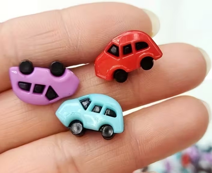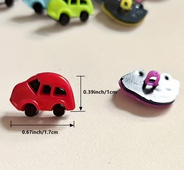 Introducing our exclusive set of 10 x Motor Car Shaped Buttons Various Colours, a delightful addition to your crafting and sewing projects. These buttons are designed to resemble charming and novelty motor cars, making them perfect for a variety of applications, from children's clothing to decorative crafts. Each button is 1.7cm x 1cm and showcases a unique and vibrant colour, ensuring that your creations stand out with a playful touch. The assortment includes a range of colours, allowing for endless creative possibilities. Whether you are embellishing a jacket, creating a scrapbook, or designing a personalised gift, these motor car shaped buttons will add a whimsical flair to your work. Crafted from high-quality materials, these buttons are not only visually appealing but also durable, ensuring they withstand the test of time. Their lightweight design makes them easy to sew onto fabric, while the secure fastening ensures they stay in place, providing both functionality and style. Perfect for both amateur crafters and seasoned professionals, our 10 x Motor Car Shaped Buttons Various Colours are an essential addition to any sewing kit. Use them to inspire creativity in children’s projects or to add a unique touch to your handmade items. With their eye-catching design and vibrant colours, these buttons are sure to delight anyone who sees them. Elevate your crafting experience with our motor car shaped buttons and let your imagination drive your next project. Order your set today and enjoy the endless possibilities that come with these charming embellishments!
