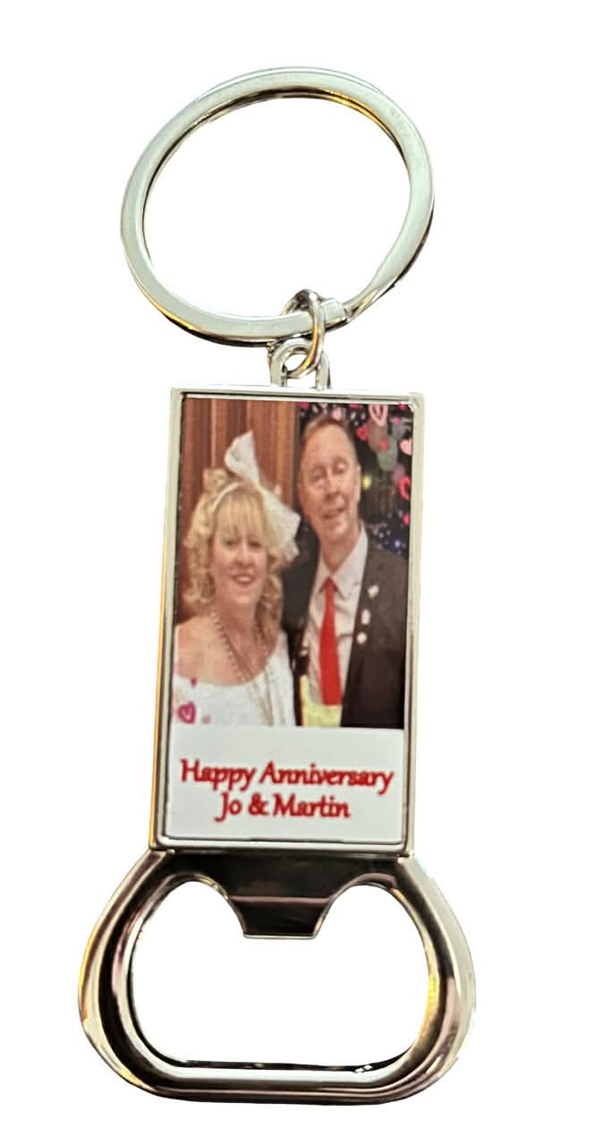 These Personalised bottle opener with photograph Keyrings, are a perfect blend of style and functionality that adds a unique touch to your everyday essentials. These can be tailored to your design, just send the photograph and message you require, Great gift. Order yours today and experience the perfect combination of personalisation, style, and practicality. Make a statement with every key you carry!
