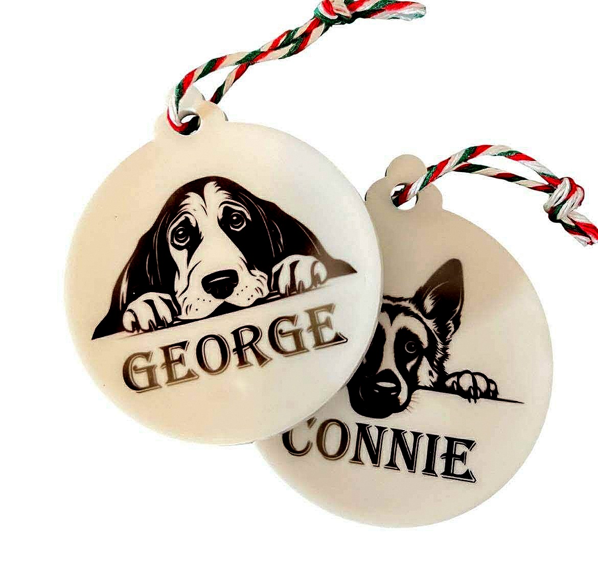 We have many breeds of dog available, and being caricature pictures, some dogs may look like another breed, depending on the dog. Each bauble can have the name of the dog under the image. Please leave this information in the checkout after selecting the dogs picture you would like. Each bauble is 6cm x 6cm and can be wiped clean. Our postage is discounted by weight, so you can add more products within the postage band and pay the same P&P price. Many thanks.