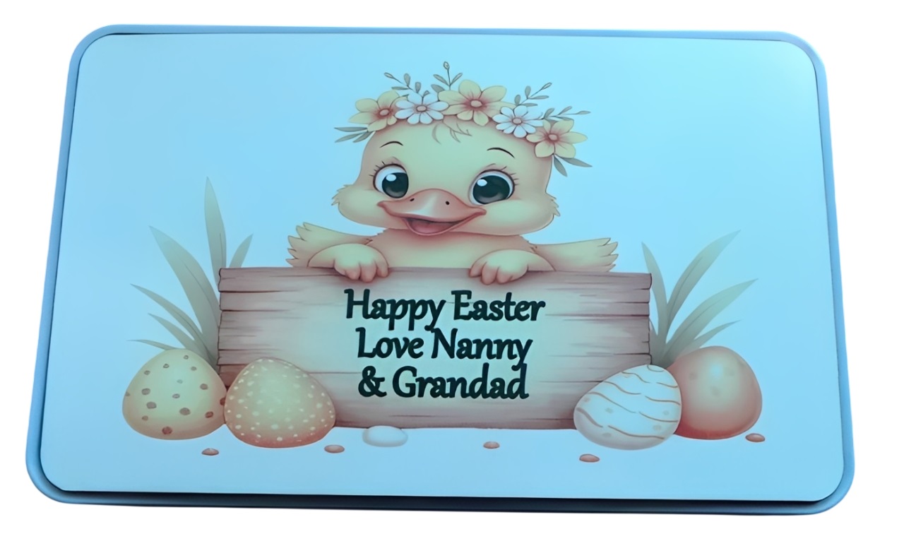Celebrate the joy of Easter with our exquisite Personalised Easter Treat Tin, a delightful addition to your festive celebrations. This beautifully crafted tin is designed to hold an assortment of your favourite Easter treats, making it the perfect gift for family, friends, or even as a special treat for yourself. Each tin is meticulously personalised to add a unique touch, ensuring that it stands out during the Easter festivities. You can choose to have a name, a special message, or a meaningful date engraved on the lid, transforming this treat tin into a cherished keepsake that can be used year after year. Constructed from high-quality materials, the Personalised Easter Treat Tin is not only visually appealing but also durable, ensuring that it can withstand the test of time. Its charming design features vibrant colours and Easter-themed motifs, making it a delightful centrepiece for your holiday table. Whether filled with chocolate eggs, jelly beans, or homemade cookies, this treat tin is versatile enough to accommodate a variety of Easter goodies. Its generous size allows for ample storage, while the secure lid keeps your treats fresh and protected from curious hands. Make this Easter unforgettable with our Personalised Easter Treat Tin. It is not just a container, it is a heartfelt gift that embodies the spirit of the season. Order yours today and create lasting memories with a touch of personalisation that will be cherished for years to come. Size 18cm x 11cm x5.5cm. You can leave the wording required at the checkout, we can get this made and dispatched for you. Our postage will discount according to weight, so please feel free to purchase other items within the same weight limit. Any issues we will contact you to clarify. Many thanks